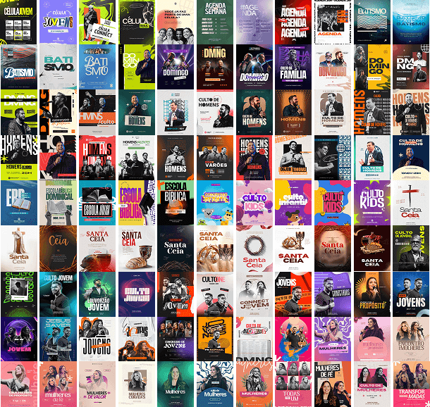 ✅ +100 posts tendência 2025, com temas atualizados para cultos, séries e eventos