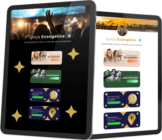 Você recebe páginas de links criadas para igrejas, com espaço para: